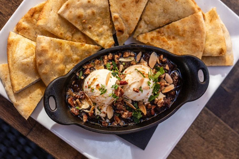 Scratch Fig Tapenade | Cremini Mushrooms | Caramelized Onions | Herbed Goat Cheese | Micro Arugula | Balsamic Drizzle