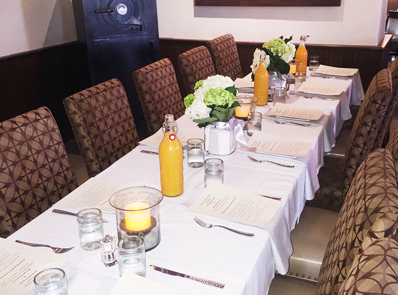 Nestled just off the Trackside Cafe, our Fireside Lounge offers a cozy place to gather a small group of friends. As the original waiting room, this semi-private event space has been keeping people warm for over 100 years. Our custom built banquette provides comfortable seating for an intimate social gathering.